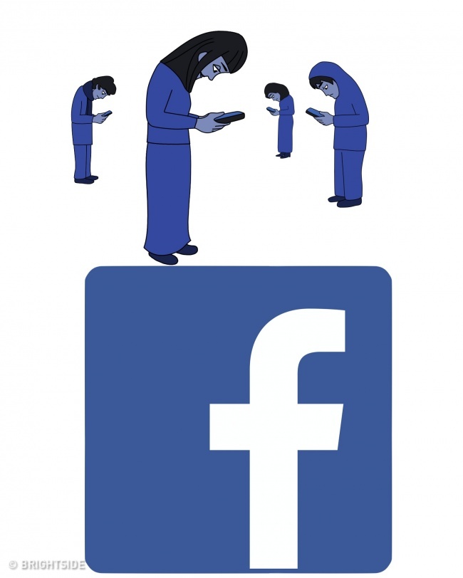 Chỉ cần bức tranh này thôi bạn cũng đủ hiểu về ý nghĩa của biểu tượng Facebook đúng không? Liệu có ứng dụng mạng xã hội nào khác khiến người dùng có thể “dán mắt” vào màn hình điện thoại như vậy?